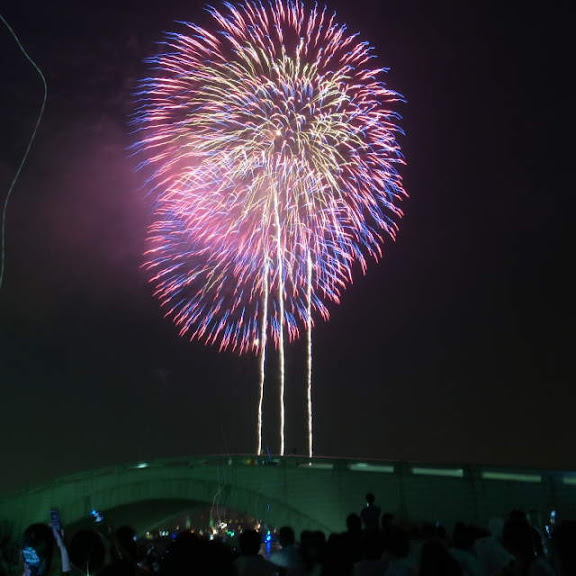 息を整えて手ぶれを出来る限り抑えてどうにかこうにか撮りました。真面目に頑張った花火撮影としては悪くないのではないかとエセは自画自賛してみます。今更ながらカメラ用三脚リモートレリーズが必要だなと思いましたが多分買わないでしょう。「そこまで道具揃えるなら一眼にすべき」みたいな自分ルール発動ですね。